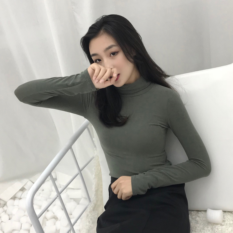 / 韓版秋裝女2018新款chic顯瘦長袖高領T恤打底衫彈力百搭休閑上衣
