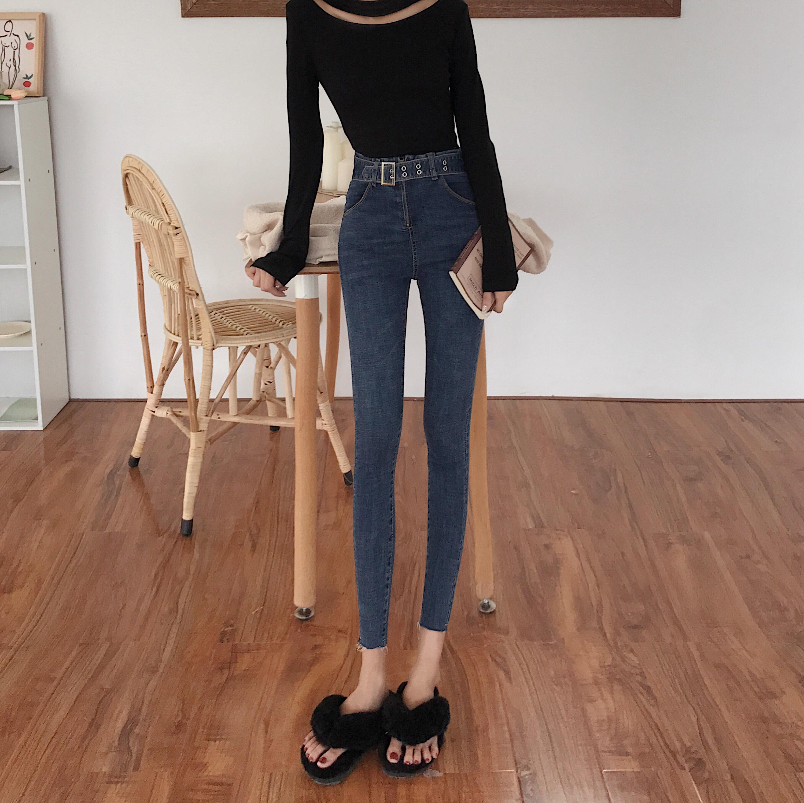 褲子新款百搭韓國顯瘦高腰牛仔褲緊身彈力chic小腳鉛筆褲九分褲女