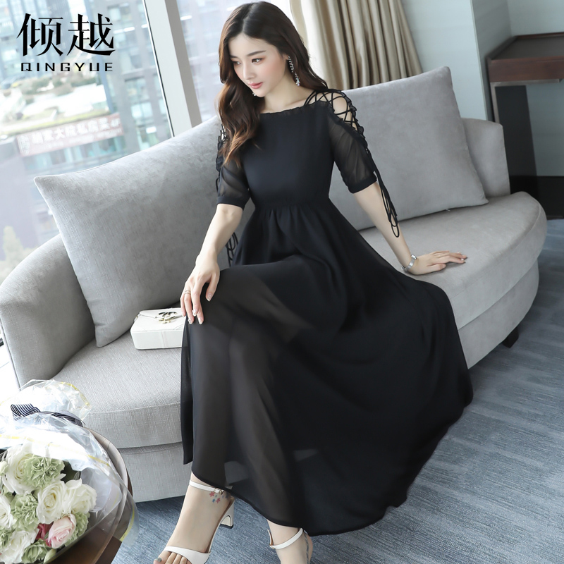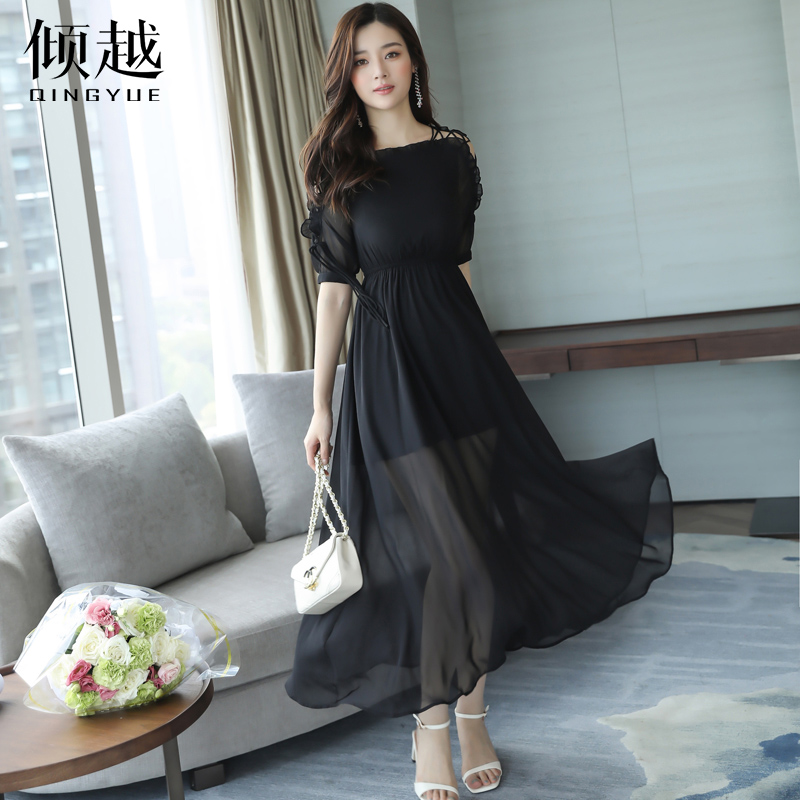 / 沙灘裙海邊度假紅色雪紡連衣裙顯瘦氣質長裙2017新款女夏波西米亞