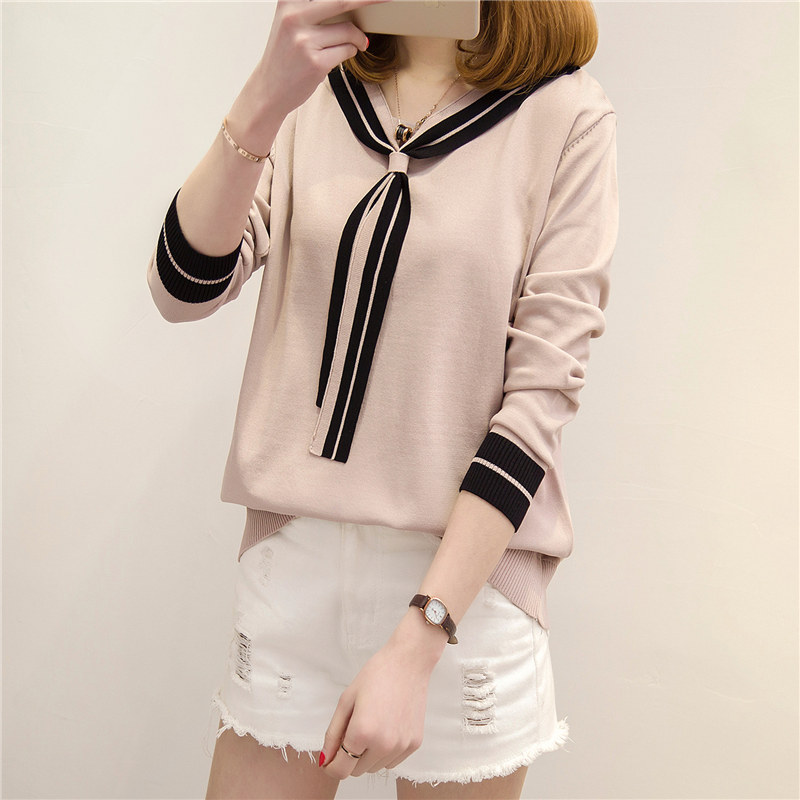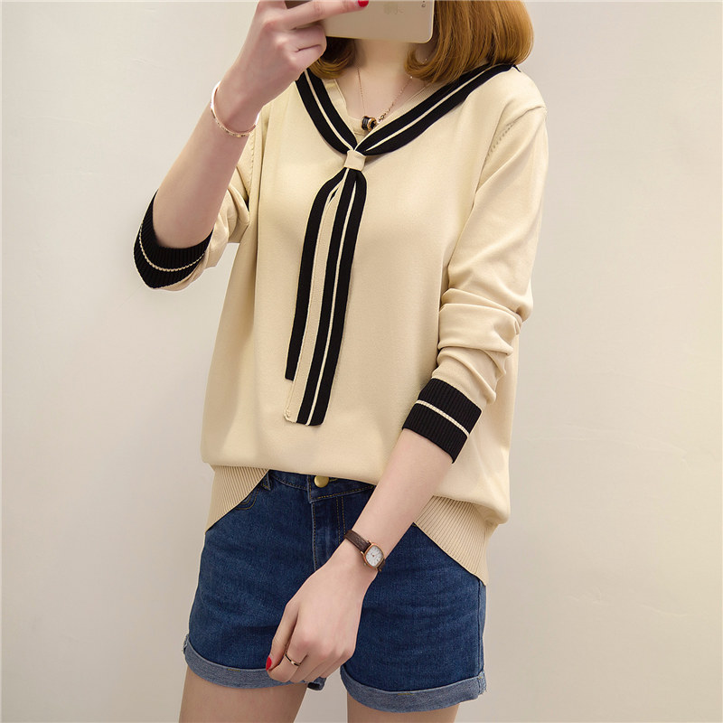 / 女裝春裝新款潮長袖針織衫女寬松套頭薄款打底衫女韓版學生
