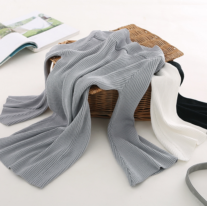 / 一字領修身短款針織衫薄款喇叭袖針織衫女套頭純色女春季針織上衣