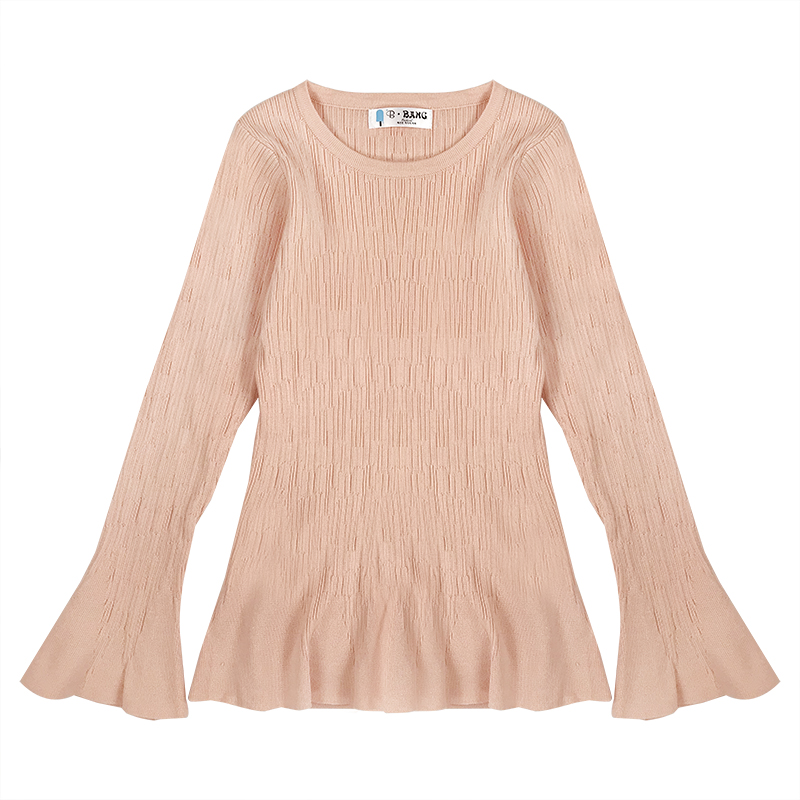 喇叭長袖修身顯瘦打底針織衫女秋冬裝新款韓版圓領時尚薄款毛衣潮