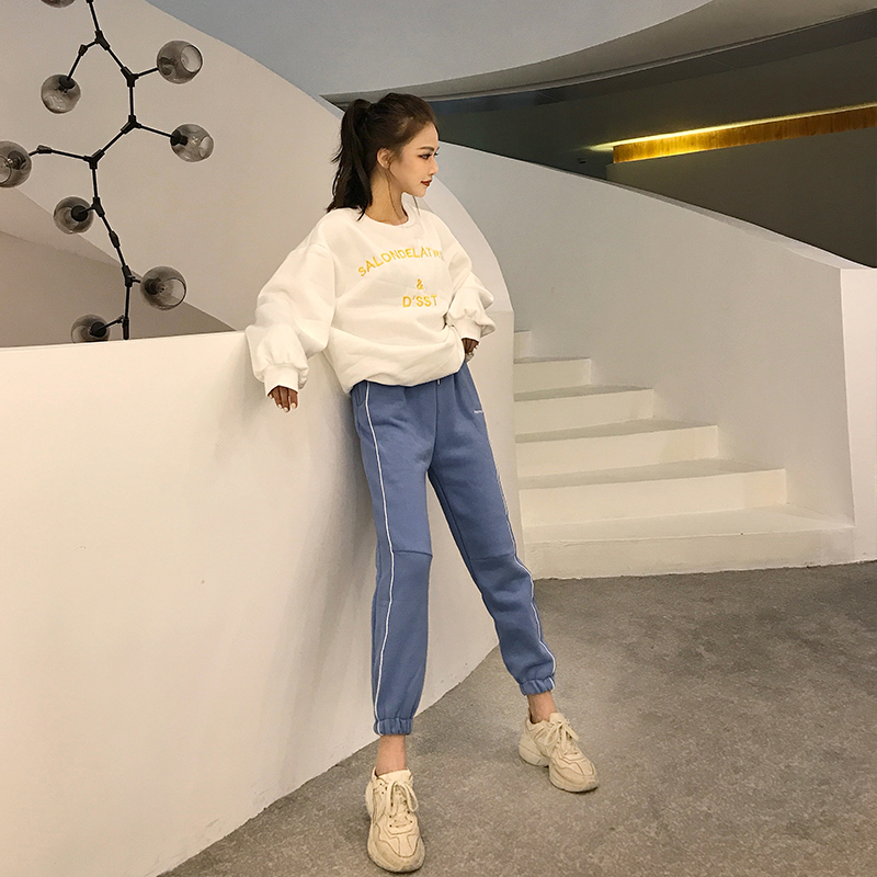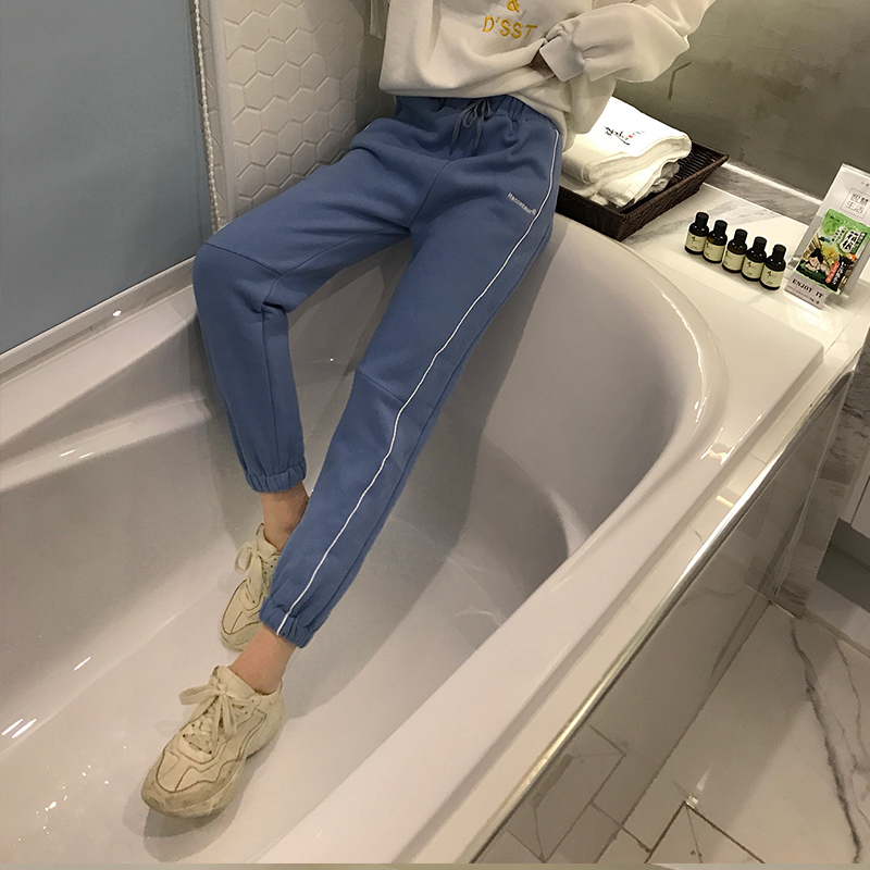 / 學生小清新韓版新款秋冬時尚chic系帶褲子女收口九分褲百搭休閑褲