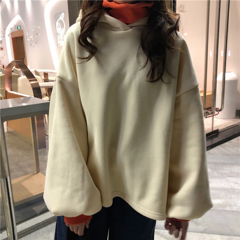 / 慵懶風撞色假兩件連帽衛衣秋冬2018新款女裝韓版寬松加絨外套上衣