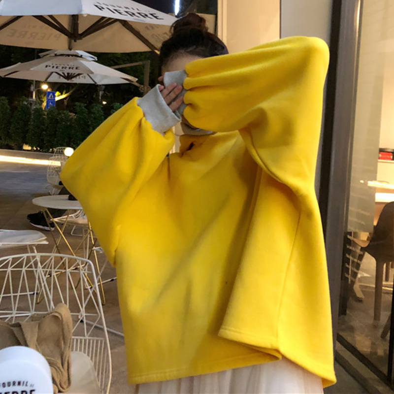 慵懶風撞色假兩件連帽衛衣秋冬2018新款女裝韓版寬松加絨外套上衣