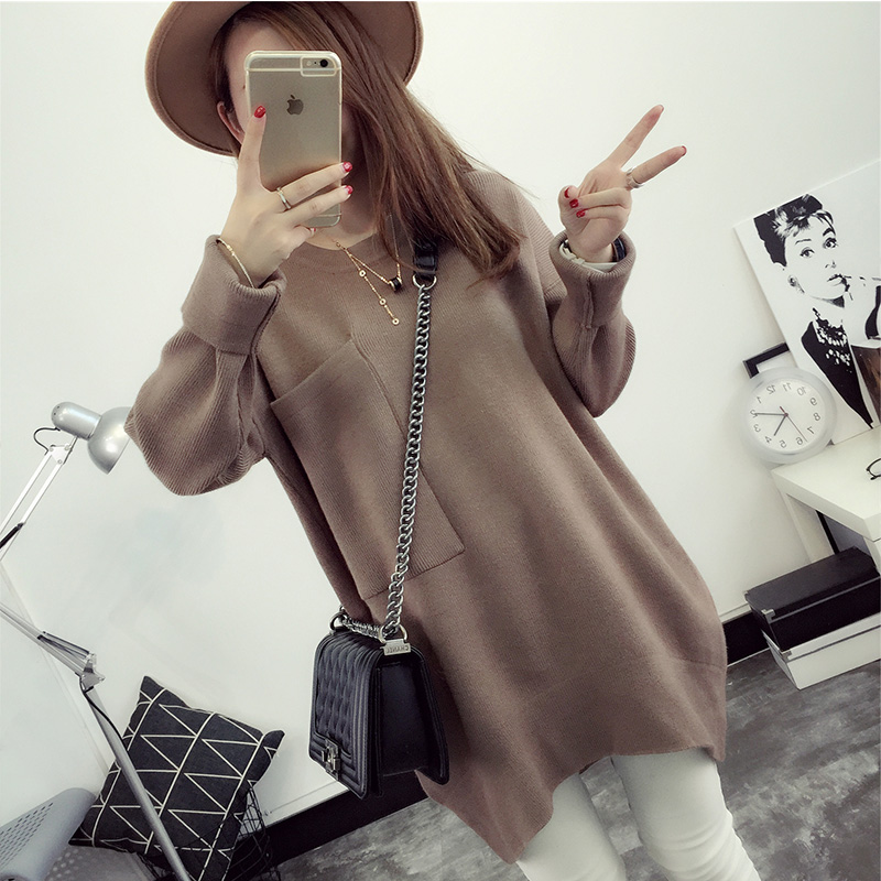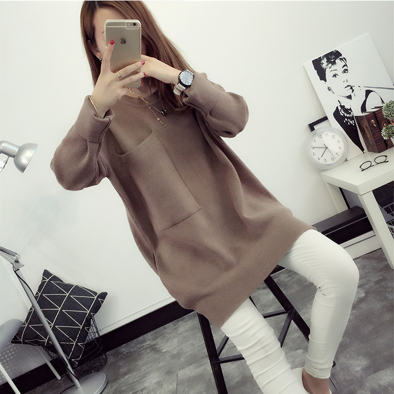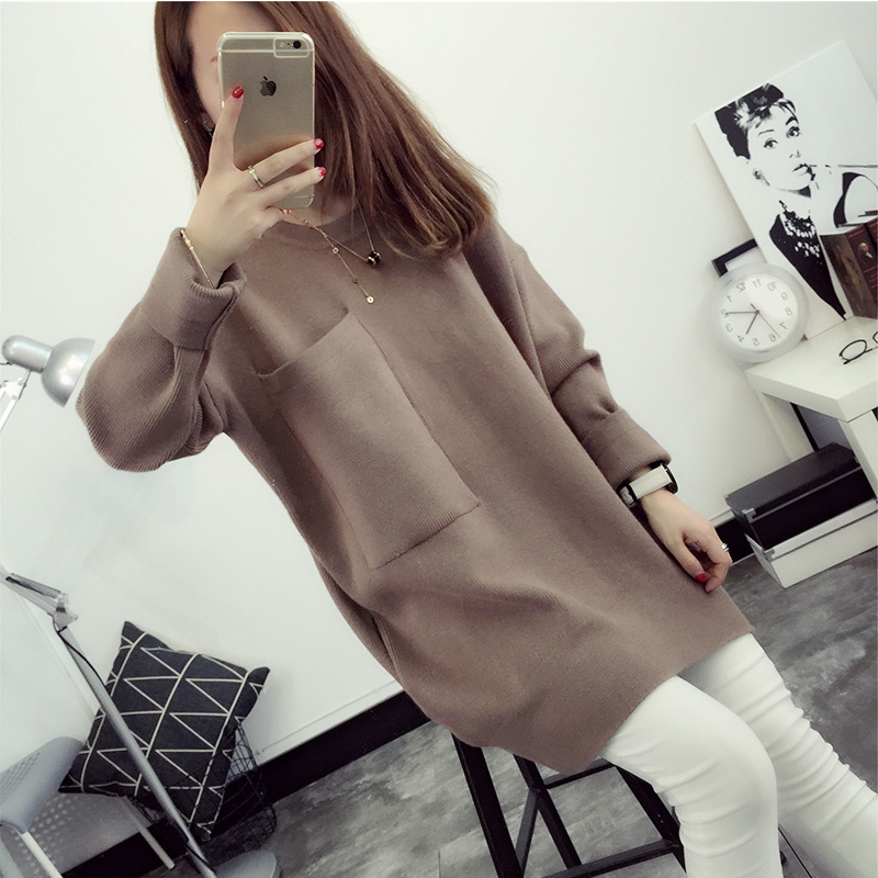 / 套頭毛衣女秋冬韓版寬松中長款純色針織衫外套女裝秋裝新款潮