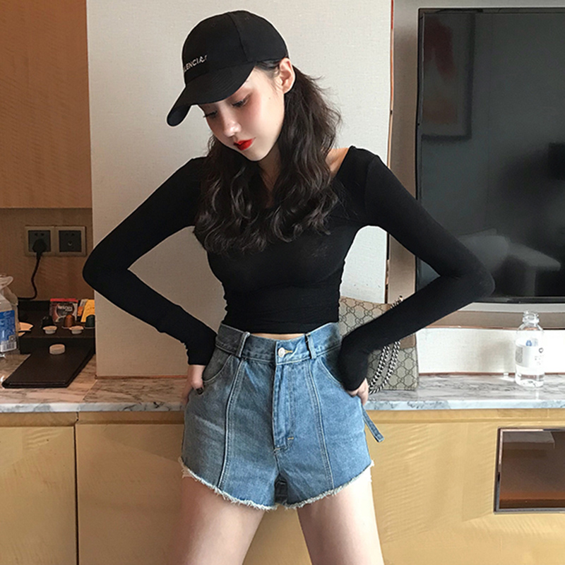 / 秋裝新款打底衫港味小心機上衣修身女裝顯瘦薄針織長袖T恤女衣服