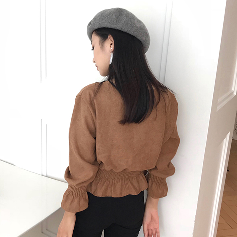 / 秋裝女2018新款時尚圓領彈力收腰短款T恤修身喇叭長袖打底上衣潮