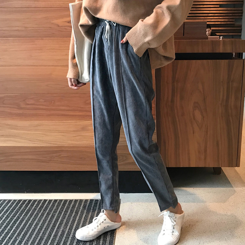 / 燈芯絨高腰顯瘦休閑褲女秋冬裝2018新款學生復古寬松哈倫褲長褲子