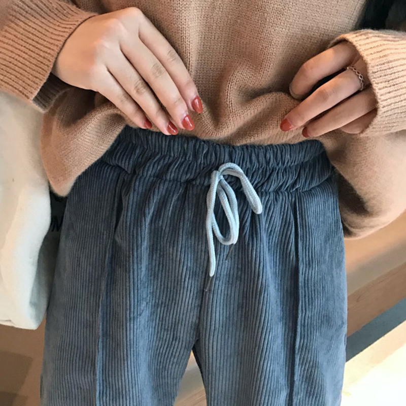 燈芯絨高腰顯瘦休閑褲女秋冬裝2018新款學生復古寬松哈倫褲長褲子