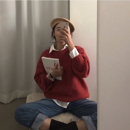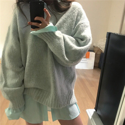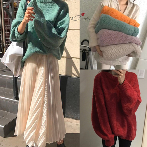 / 慵懶風新款韓版秋季上衣女百搭復古chic長袖彩虹多色寬松圓領毛衣