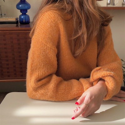 慵懶風新款韓版秋季上衣女百搭復古chic長袖彩虹多色寬松圓領毛衣