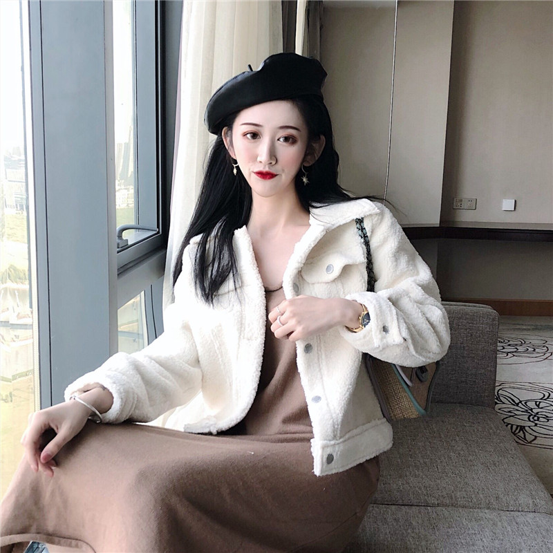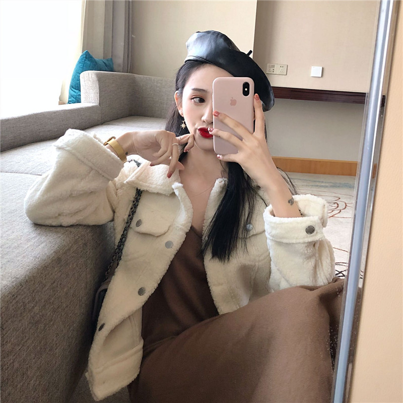 韓版棉服外套女秋裝2018新款寬松加厚保暖仿羊羔毛棉衣短款開衫潮