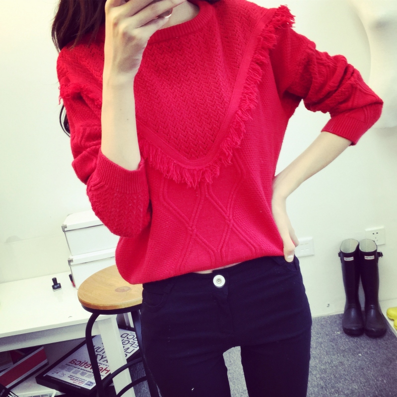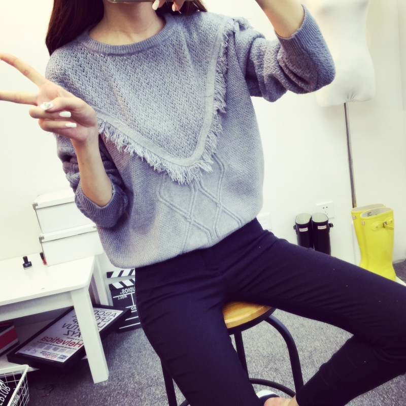 / 秋裝新款韓版女裝流蘇套頭純色圓領上衣針織衫毛衣女