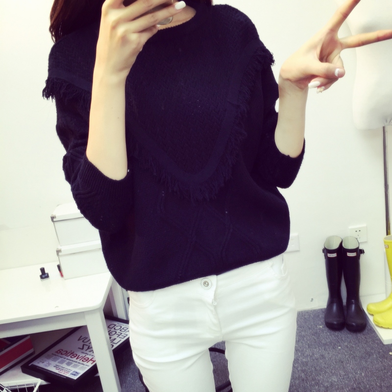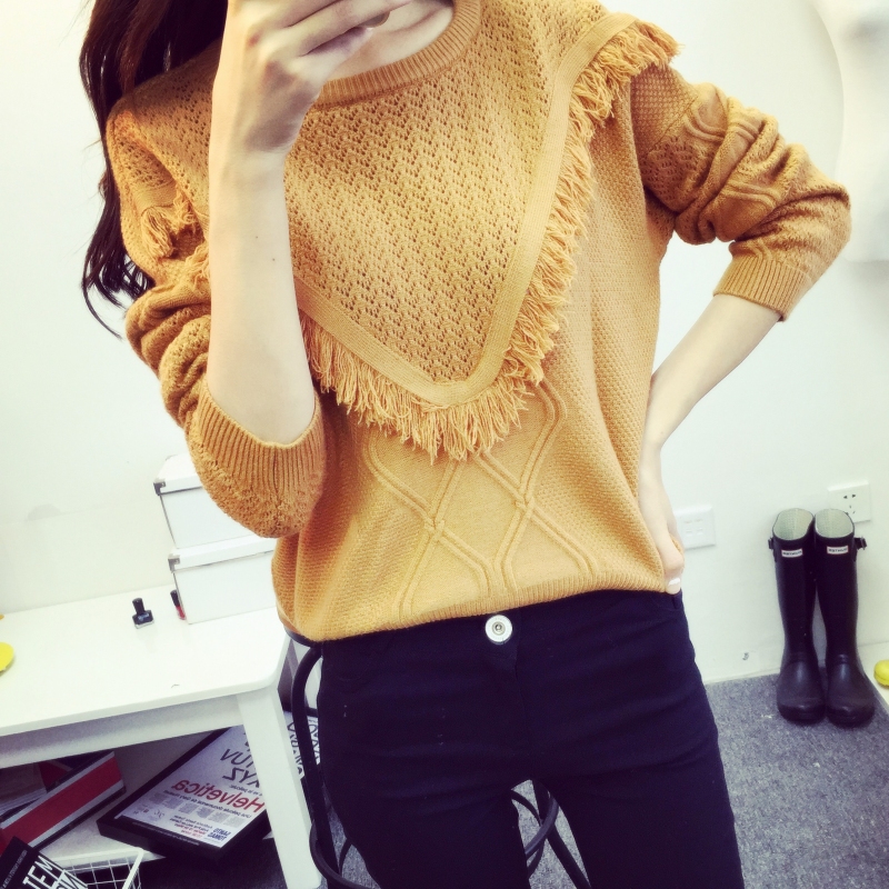 秋裝新款韓版女裝流蘇套頭純色圓領上衣針織衫毛衣女