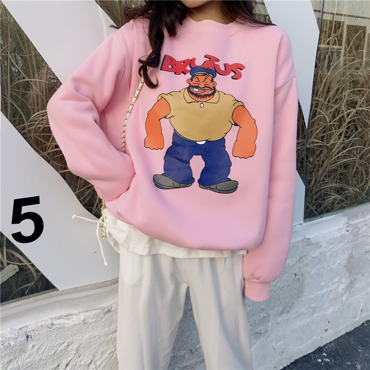 復古港風網紅同款加絨大力水手卡通印花圓領衛衣女秋冬2018新款潮