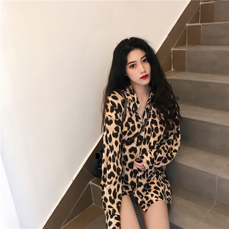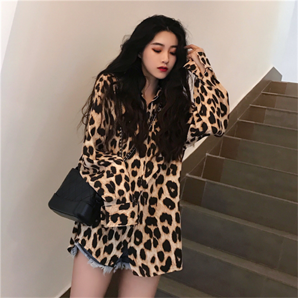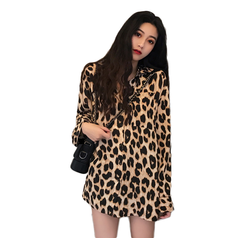 / 秋裝女2018新款時尚韓版氣質百搭豹紋上衣寬松顯瘦長袖遮臀襯衫潮