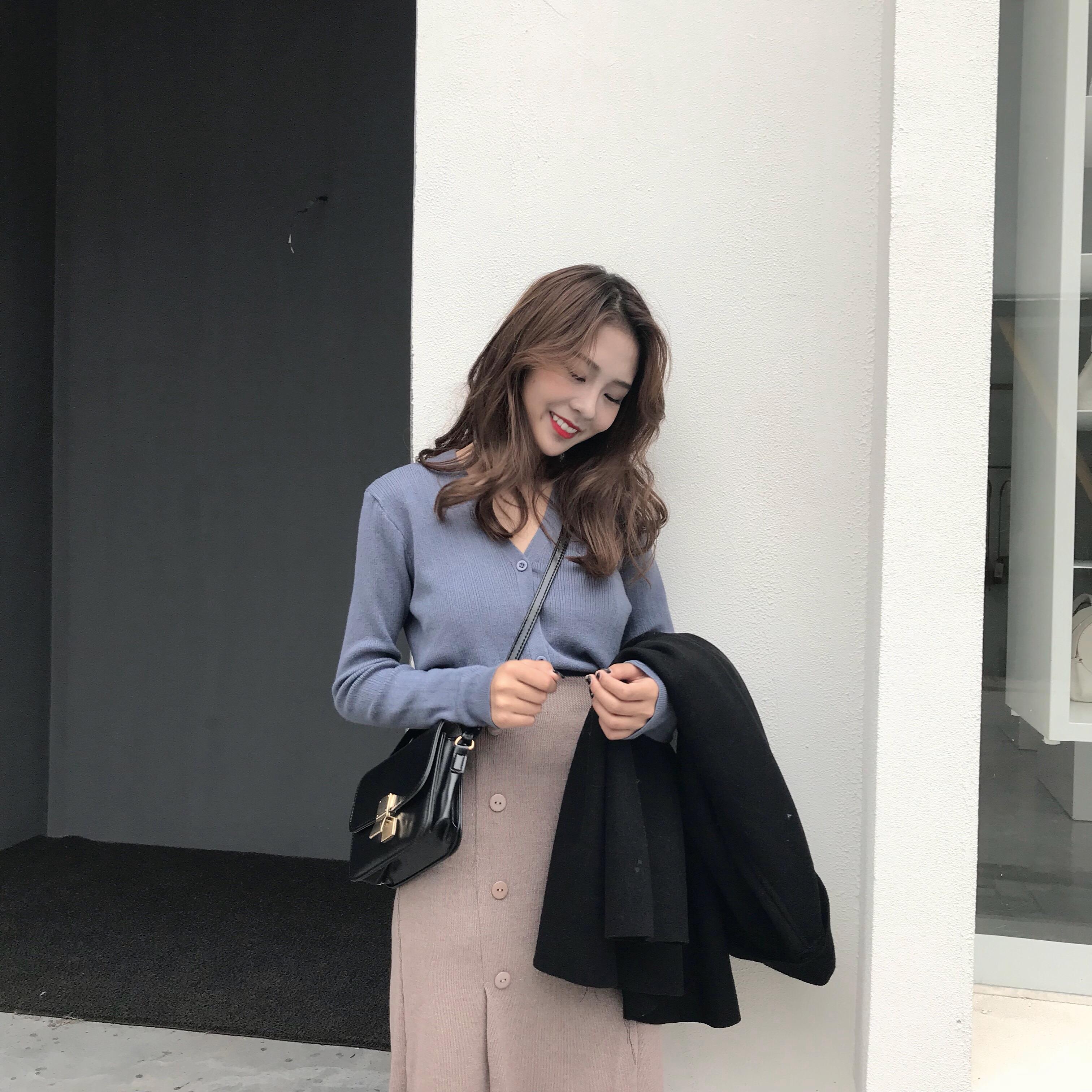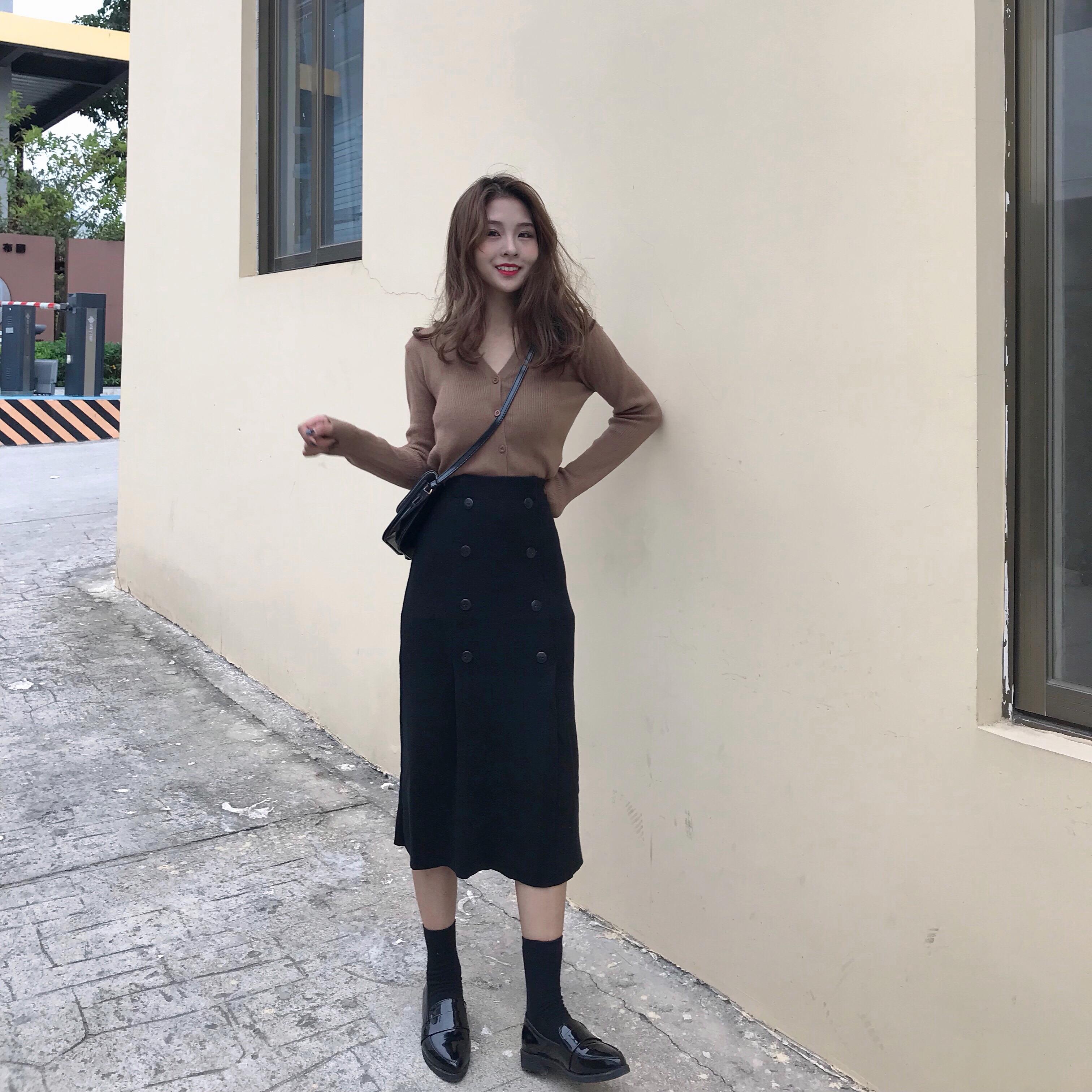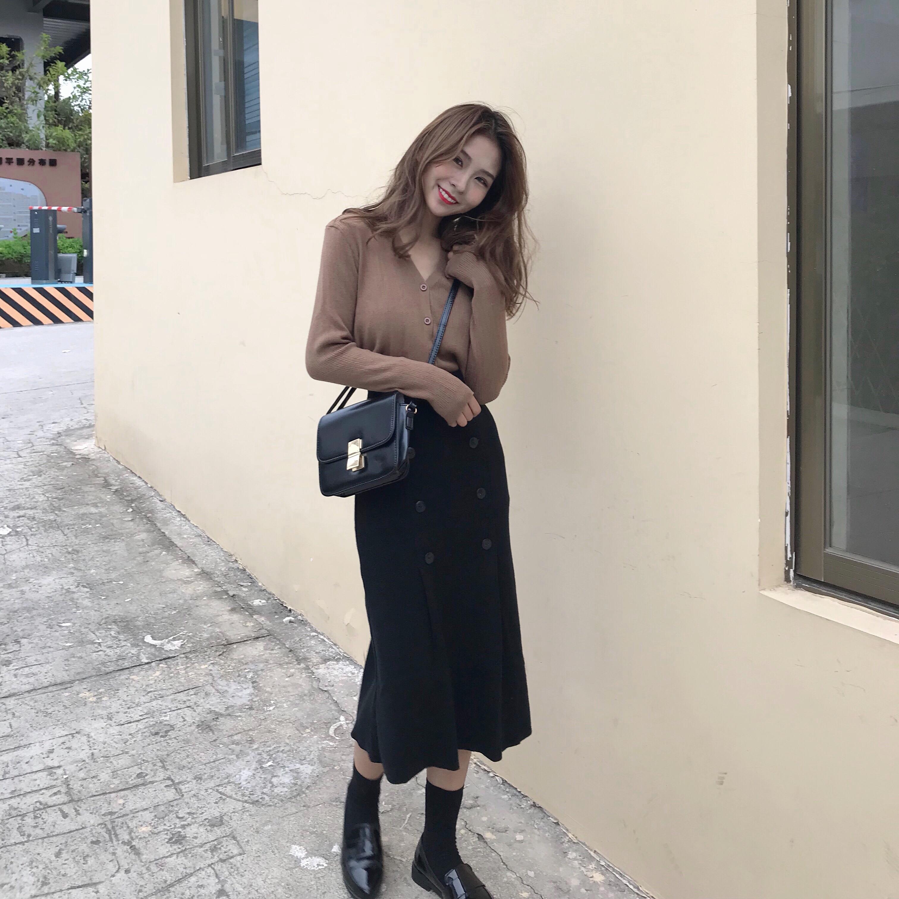 藍上衣+淺咖裙|駝色上衣+黑裙