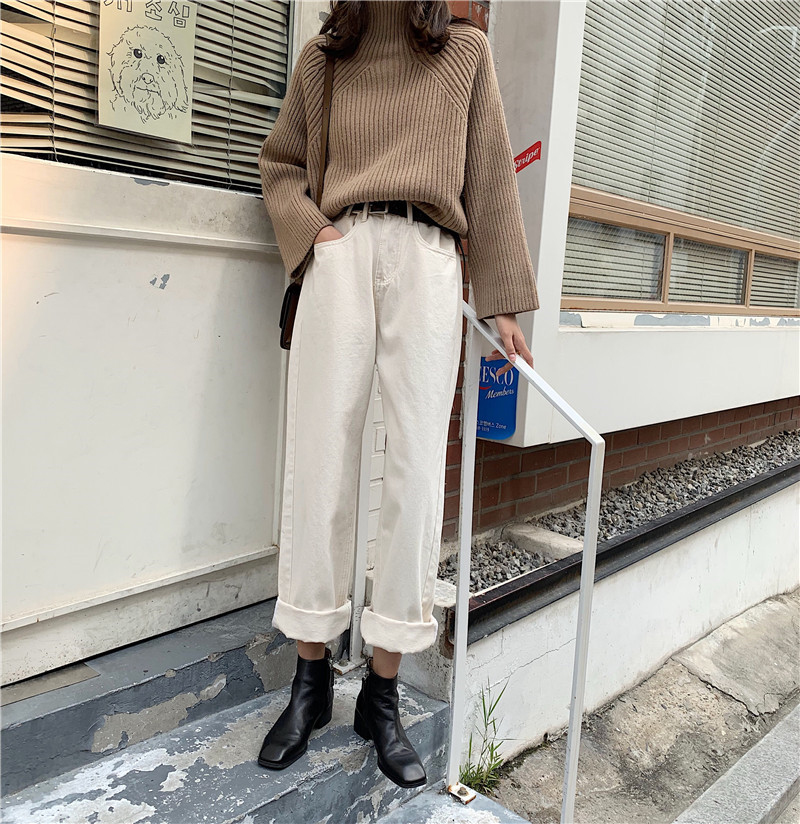 韓版時尚褲子女秋冬2018新款純色百搭寬松顯瘦百搭牛仔褲女闊腿褲