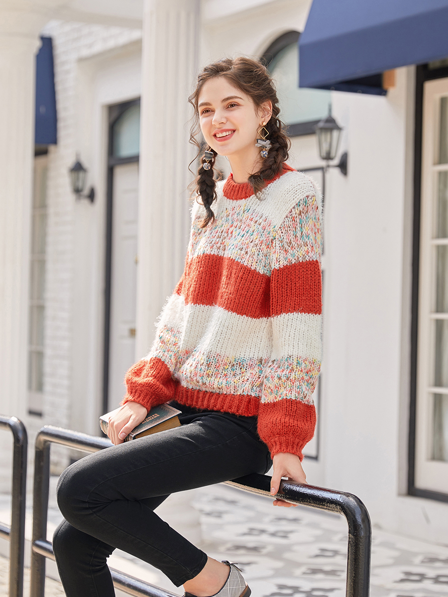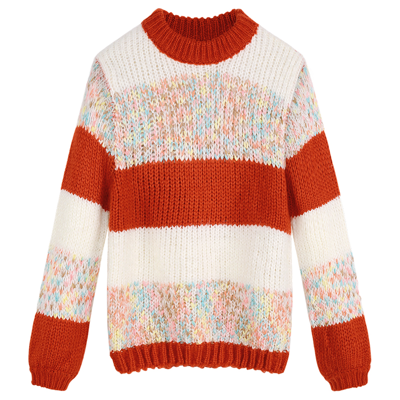 MG小象原宿條紋毛衣女寬松長袖2018秋冬新款圓領套頭學生chic上衣