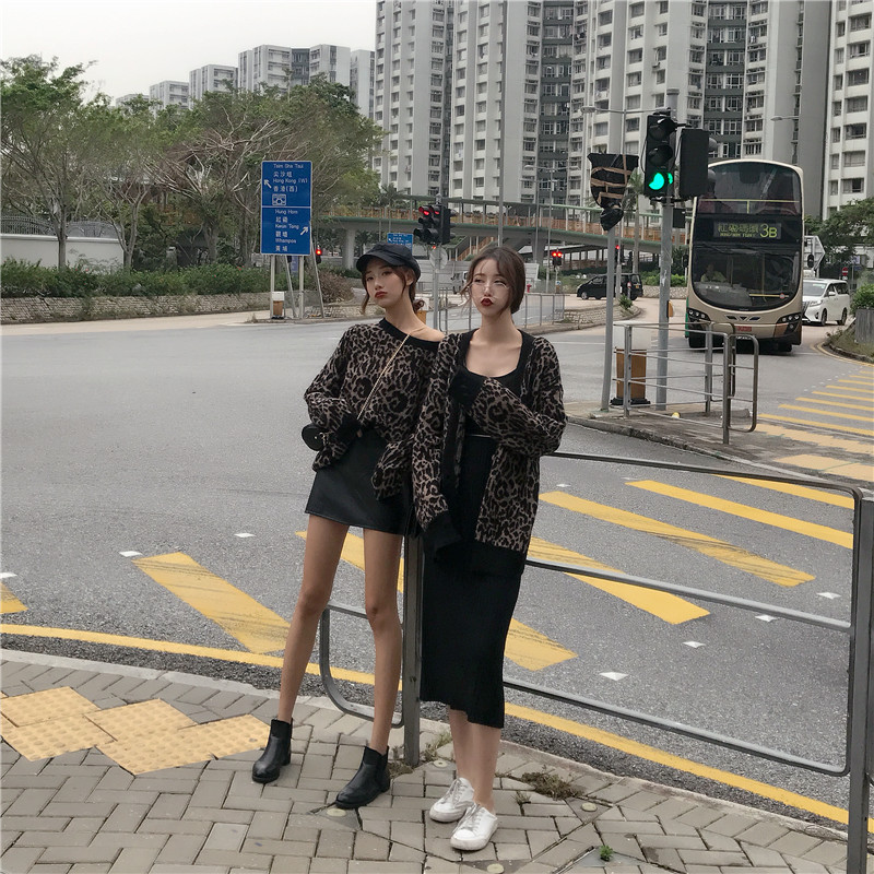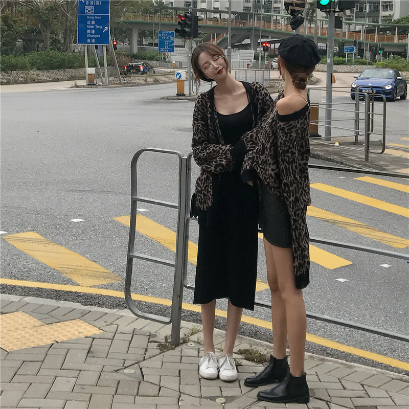 毛衣女2018新款豹紋套頭針織衫慵懶風寬松oversize中長款毛衣女潮