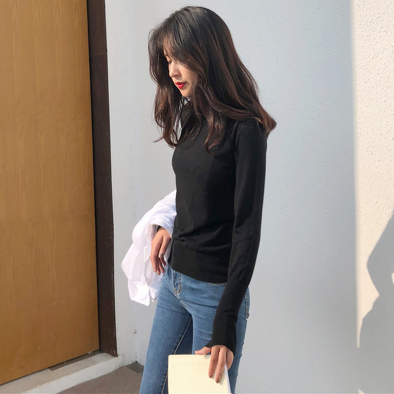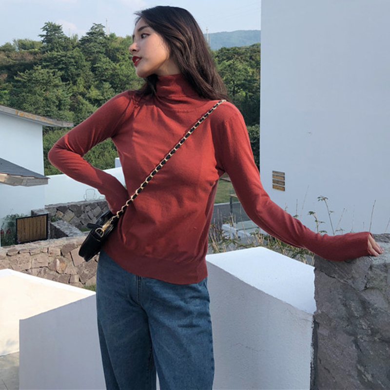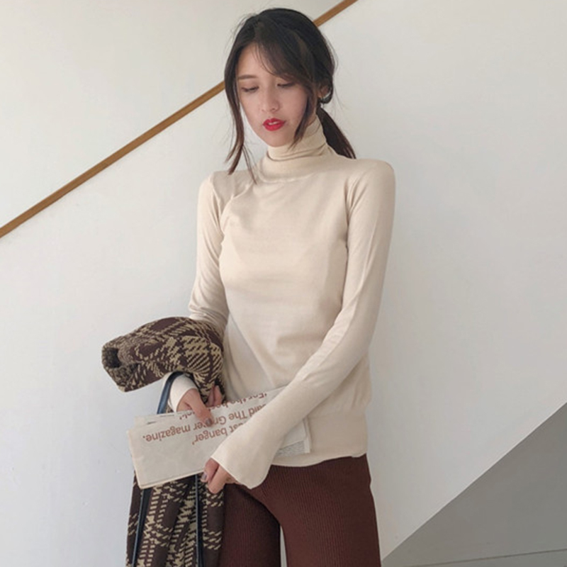 氣質高領修身顯瘦打底針織衫女秋冬裝新款學院風外穿套頭長袖上衣
