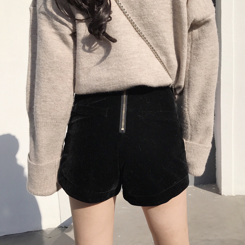 / 褲子女2018新款韓版百搭高腰時尚港風chic氣質秋季雙排扣絲絨短褲
