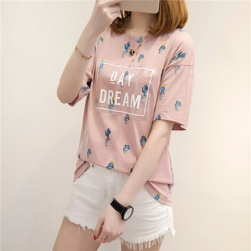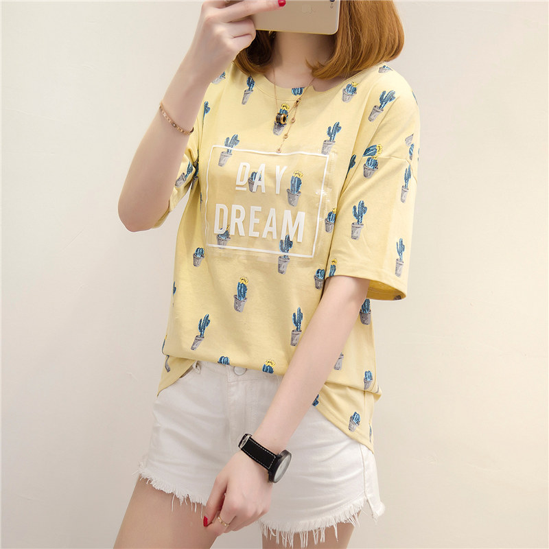夏裝新款女裝寬松t恤女短袖打底學生仙人掌韓版百搭上衣女夏