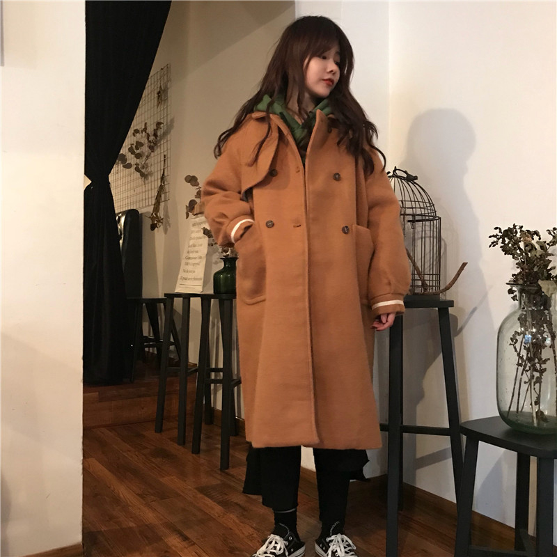 秋冬女裝2018新款復古寬松夾棉毛呢外套學生時尚大衣中長款上衣潮