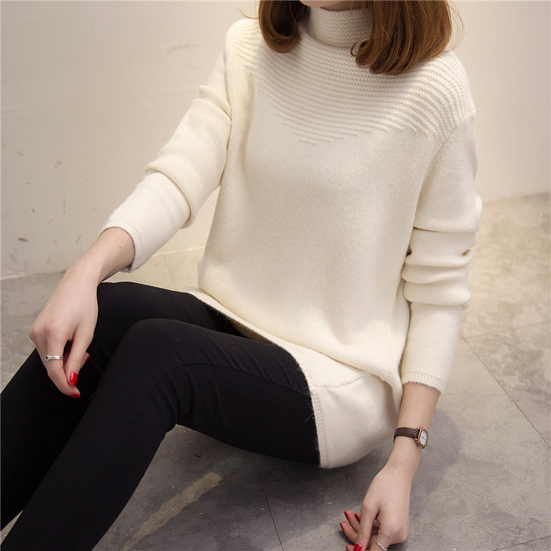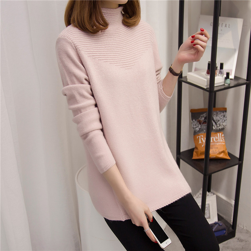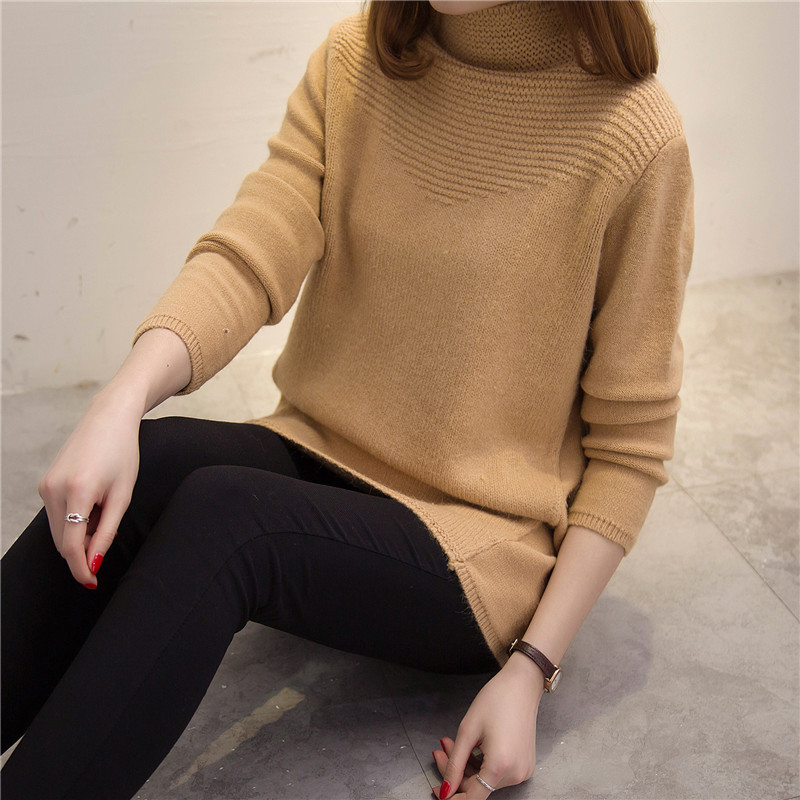 / 中長款打底衫長袖韓版高領毛衣裙上衣針織衫女套頭秋冬女裝新款潮