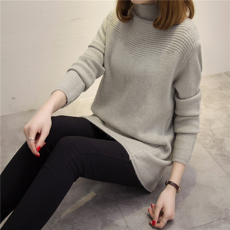 中長款打底衫長袖韓版高領毛衣裙上衣針織衫女套頭秋冬女裝新款潮