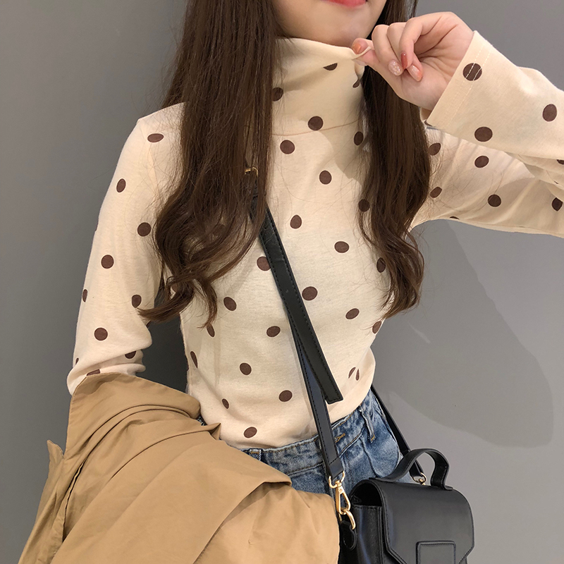 秋冬女裝韓版簡約修身顯瘦波點打底衫學生高領長袖T恤秋衣上衣潮