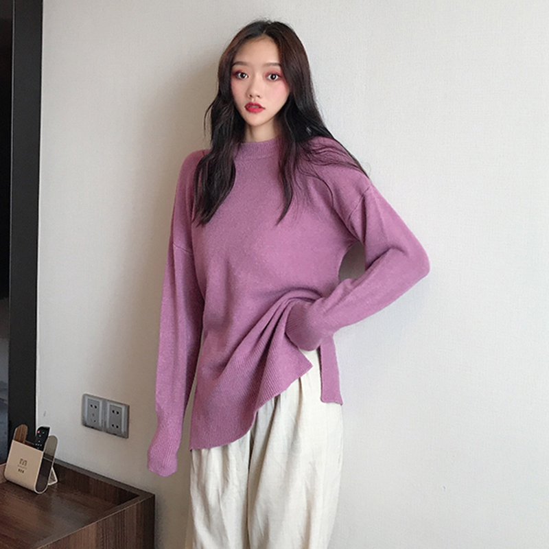 / 慵懶風套頭毛衣外套女2018秋冬裝新款韓版寬松開叉長袖針織上衣潮