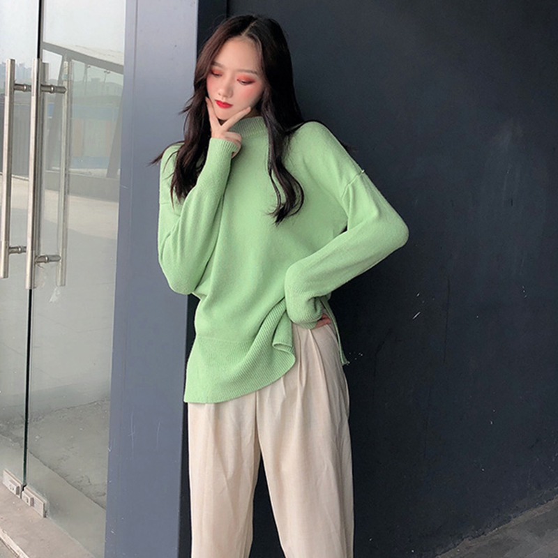 慵懶風套頭毛衣外套女2018秋冬裝新款韓版寬松開叉長袖針織上衣潮