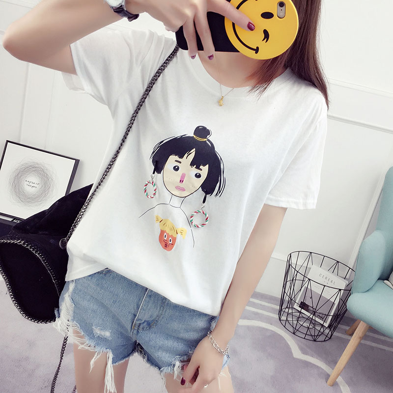/ 夏裝新款韓版學生寬松百搭卡通印花t恤女短袖可愛圓領上衣潮