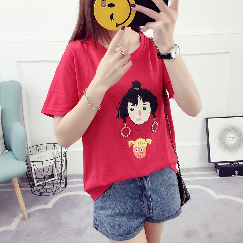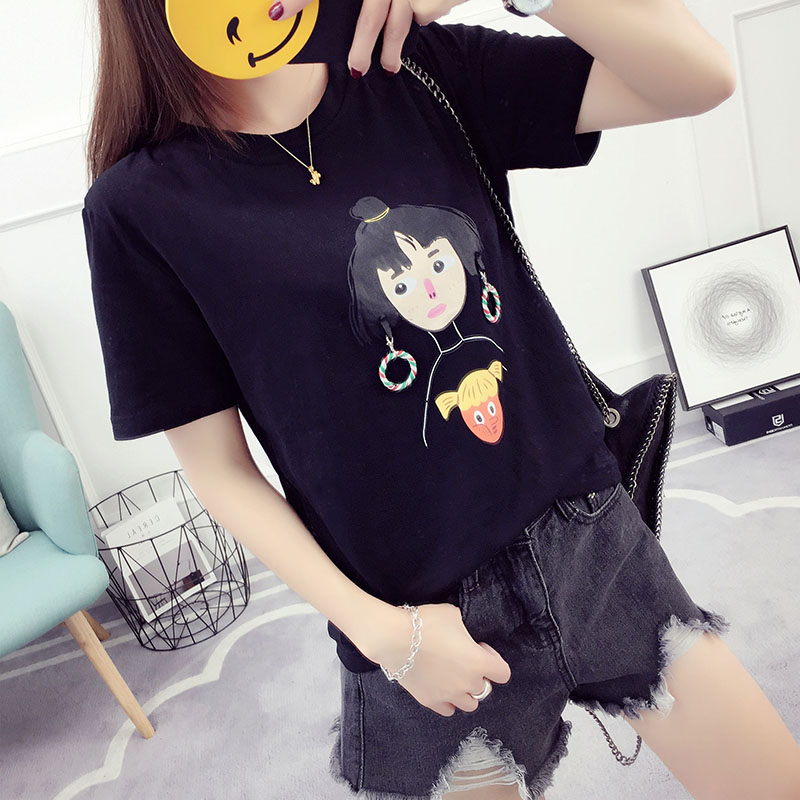 夏裝新款韓版學生寬松百搭卡通印花t恤女短袖可愛圓領上衣潮