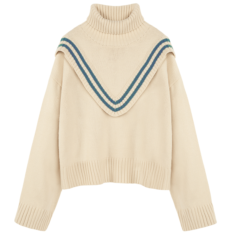 MG小象高領慵懶風毛衣女套頭學生米色針織衫2018新款寬松毛線衣潮