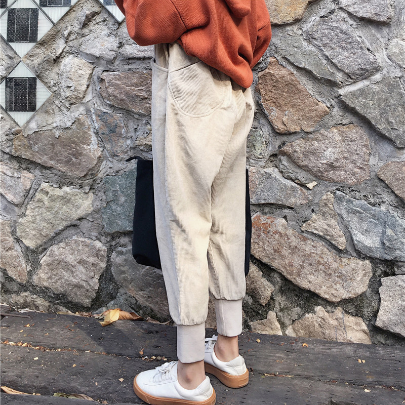 / 燈芯絨束腳褲女冬裝2018新款韓版寬松加厚休閑褲高腰顯瘦哈倫褲子