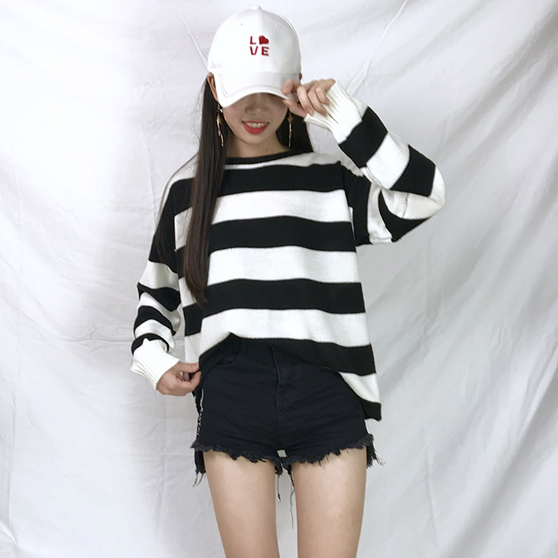 / 大毛衣女裝秋2018新款條紋寬松套頭針織衫韓版學生毛線衣慵懶外套