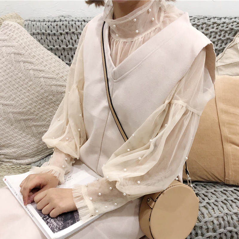 心機女套裝秋冬新款兩件套顯瘦長袖雪紡上衣毛呢魚尾背心連衣裙子