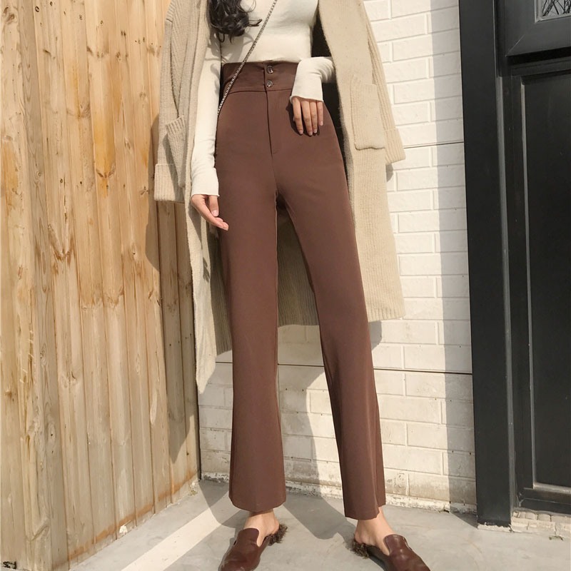 復古港味秋裝女2018新款高腰顯瘦兩粒扣西裝褲簡約百搭長褲休閑褲