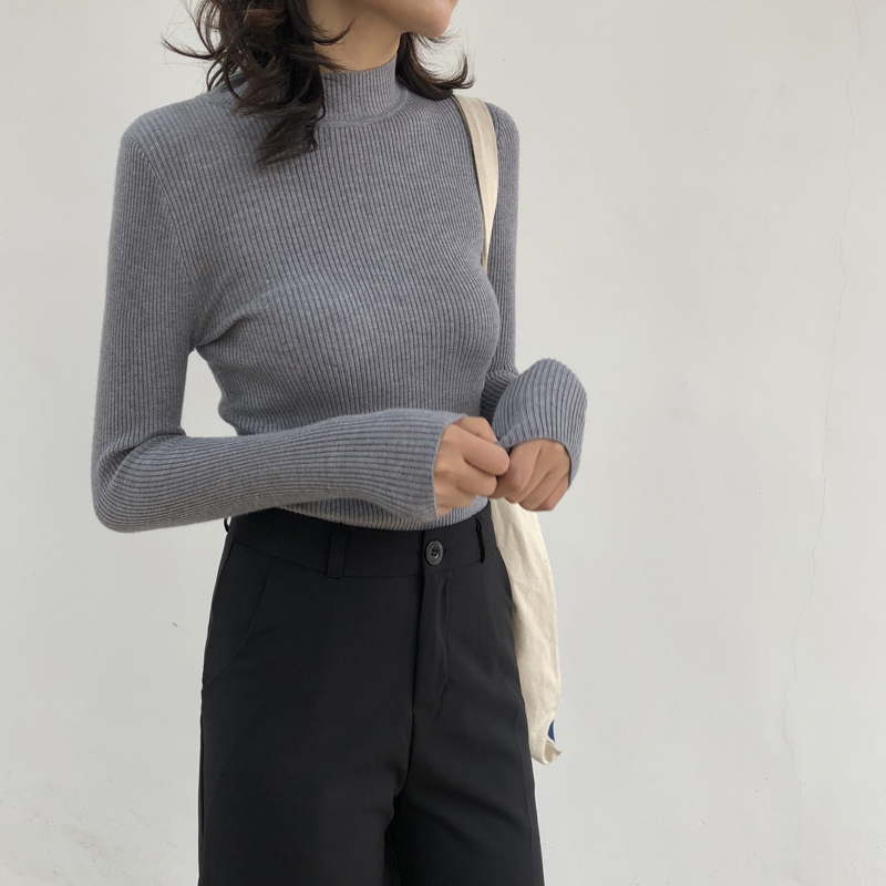 糖果色長袖毛衣外套女秋冬裝2018新款韓版彈力修身顯瘦打底針織衫