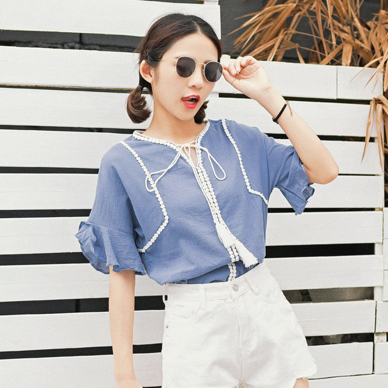 小V領的設計加上系帶流蘇設計,別有一番風味