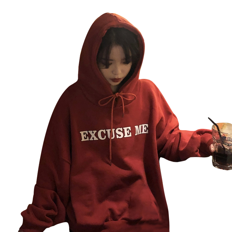 / 秋冬女裝韓版寬松慵懶風連帽字母加絨加厚套頭超火衛衣上衣外套潮