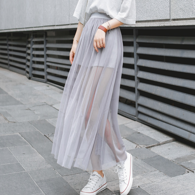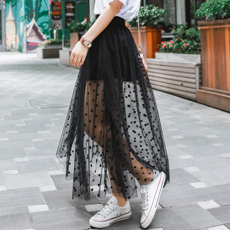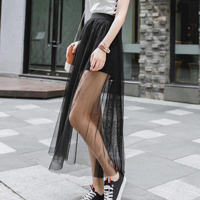 / 夏季新款透視網紗半身裙罩裙韓版中長款長裙性感學生高腰紗裙