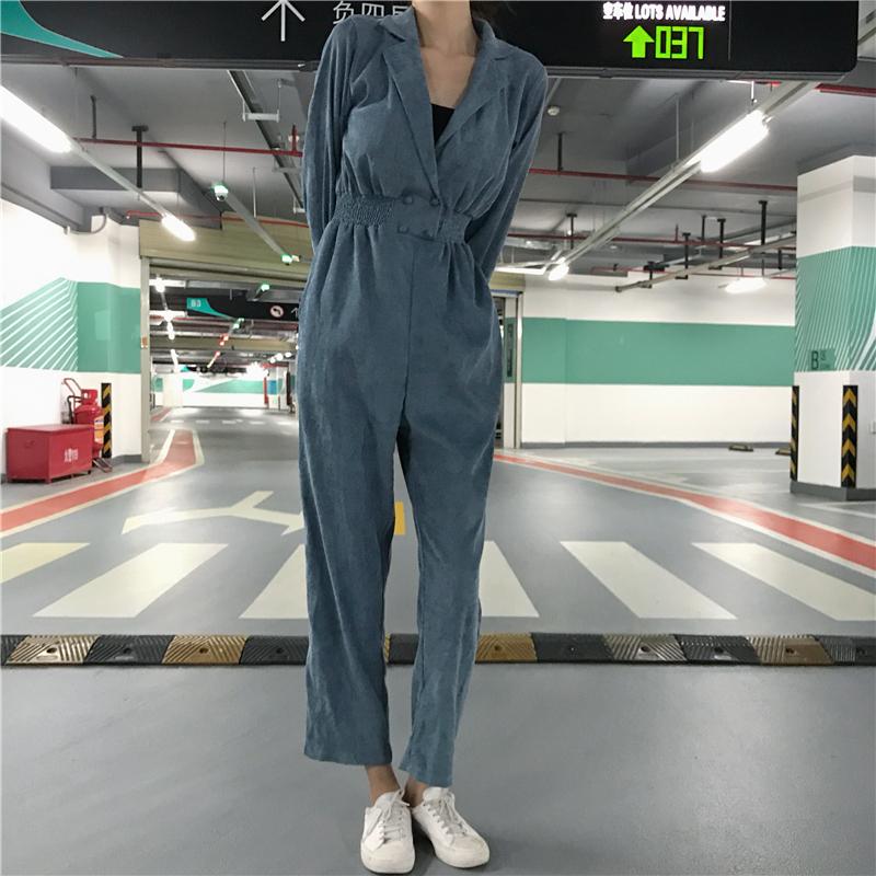 / 褲子女學生寬松韓版ulzzang百搭港風絨料氣質高腰顯瘦直筒連體褲