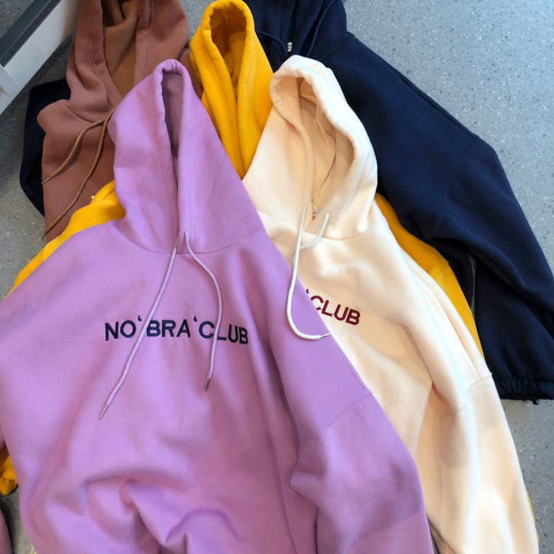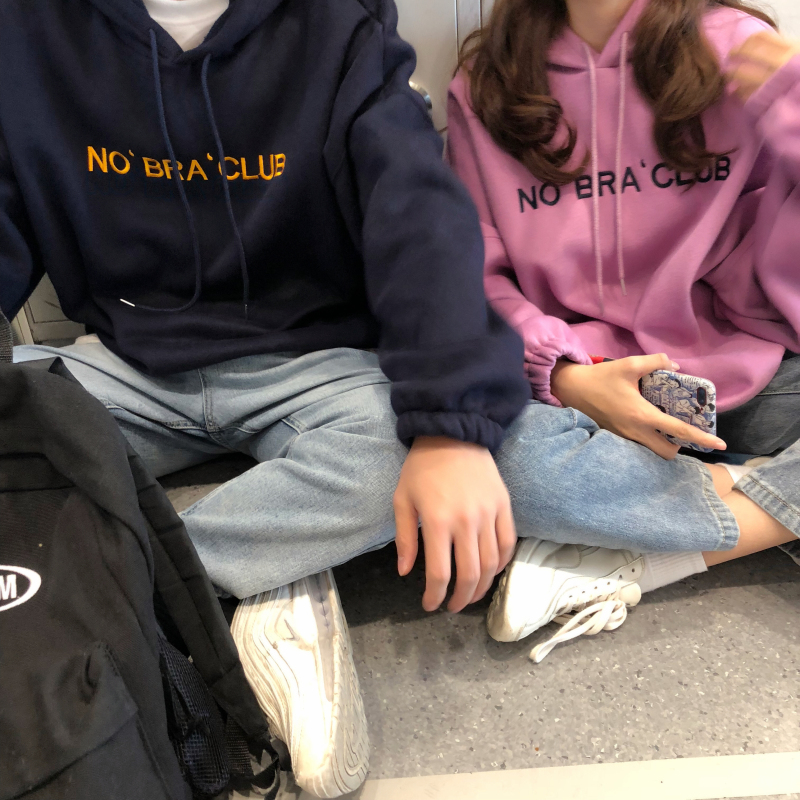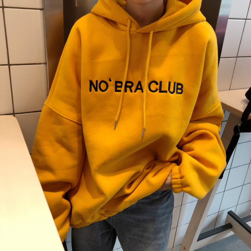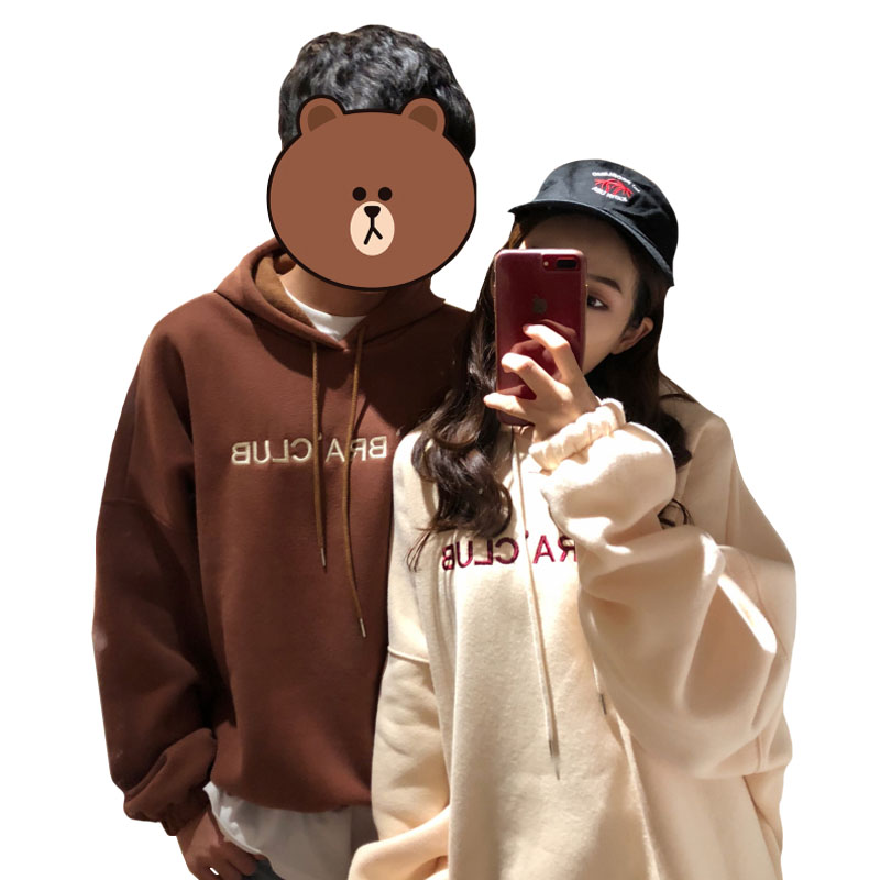 / 秋冬韓版pp home加絨加厚連帽衛衣中長款寬松字母刺繡上衣外套女