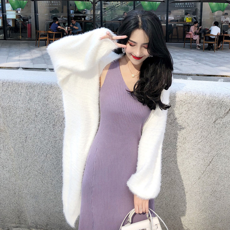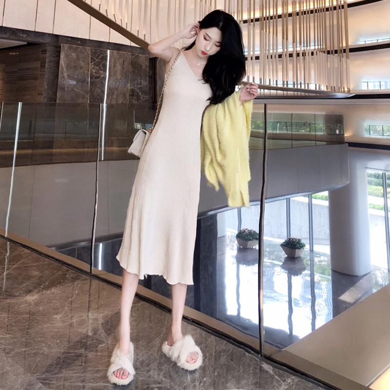 白色中長款毛衣8880|鵝黃色中長款貿易8880|杏色針織V領裙88800|秋紫針織V領裙88800