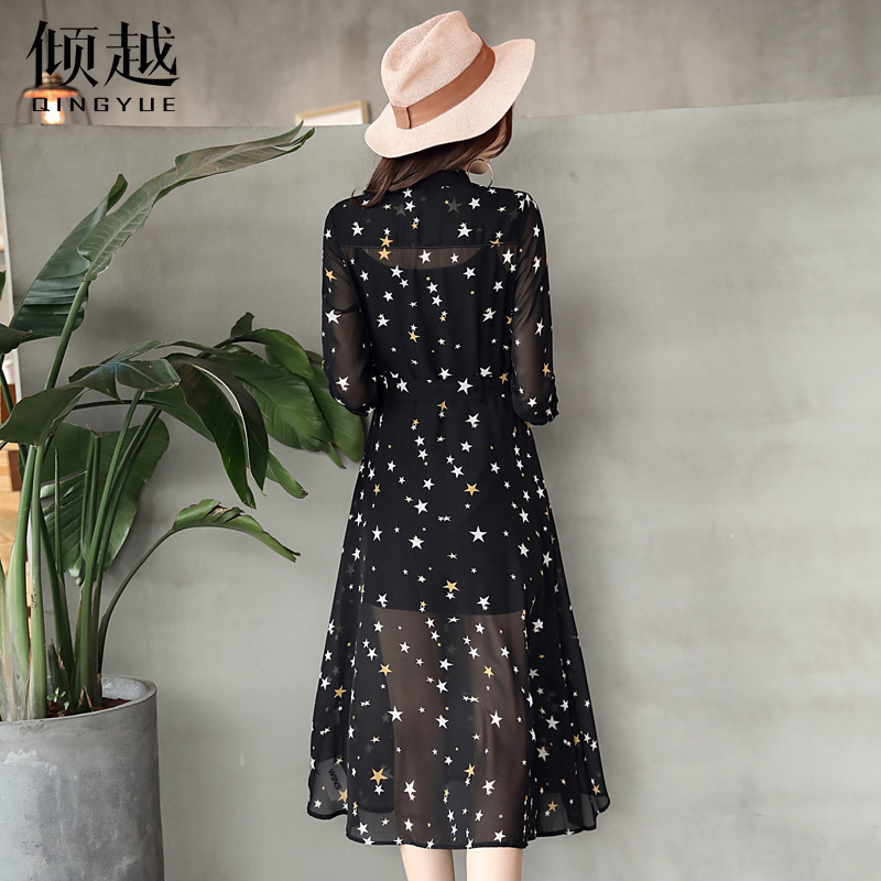 傾越2017春裝新款潮雪紡連衣裙女韓版修身中長款兩件套打底裙夏季