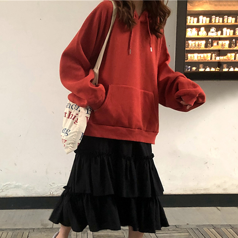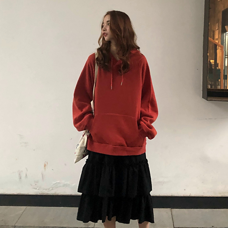 / 學生休閑兩件套秋裝女2018新款寬松加絨連帽衛衣高腰半身蛋糕裙子